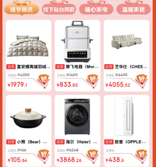 为霸道耗尽者年末焕新家的需求,京东家电家居12.12年终特惠现已火热开启。12月11日20点,京东12.12海量家电家居爆款居品年末放价,国补再叠9折,暖冬补贴至高省3000元,还有低至1折的好物限量抢购。12月11日20点,只需翻开京东APP搜索“冬家好物”“天天抢五折”即可干预举止会场,抢先加购中意商品,为冬日焕新作念足准备。